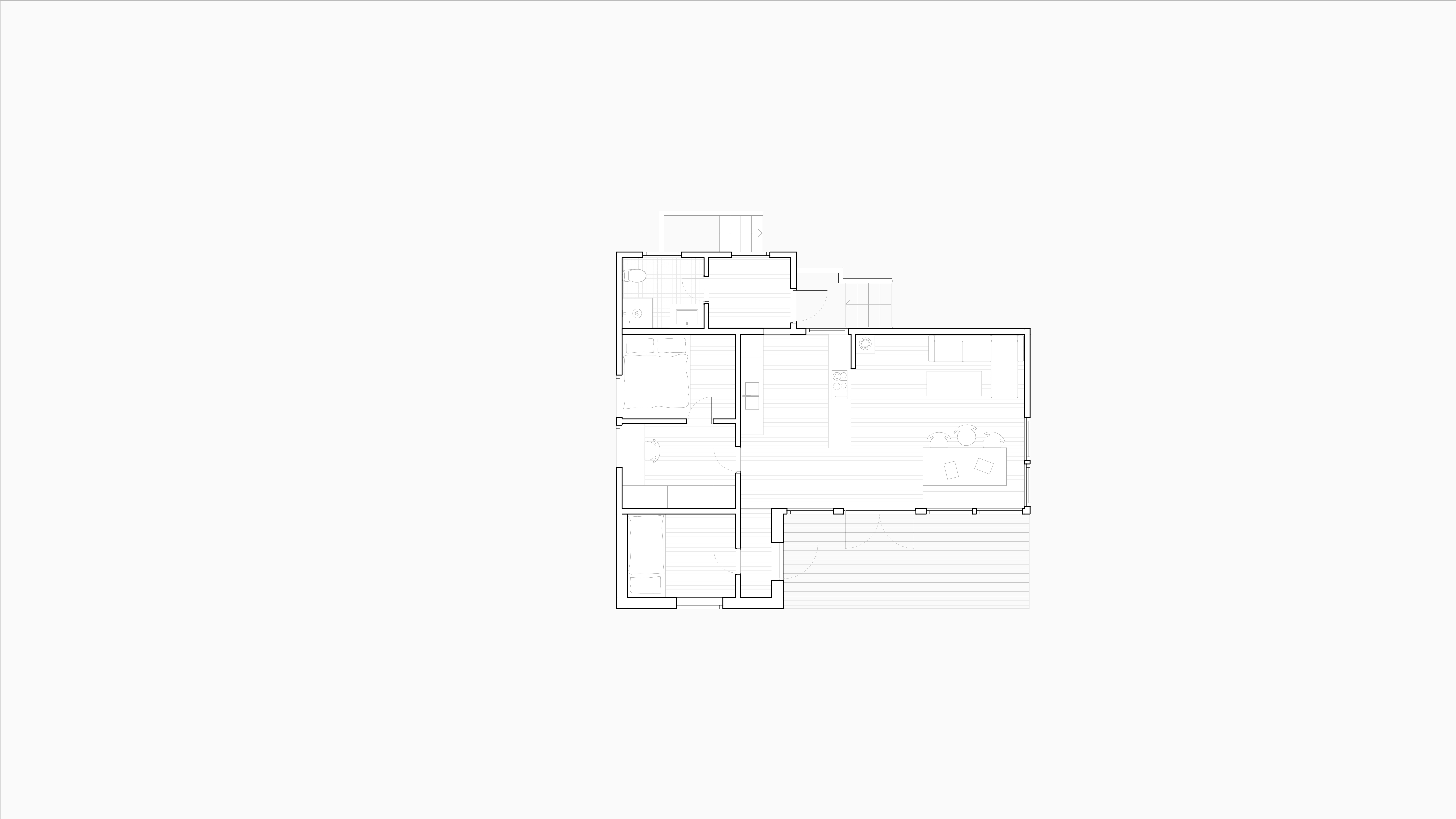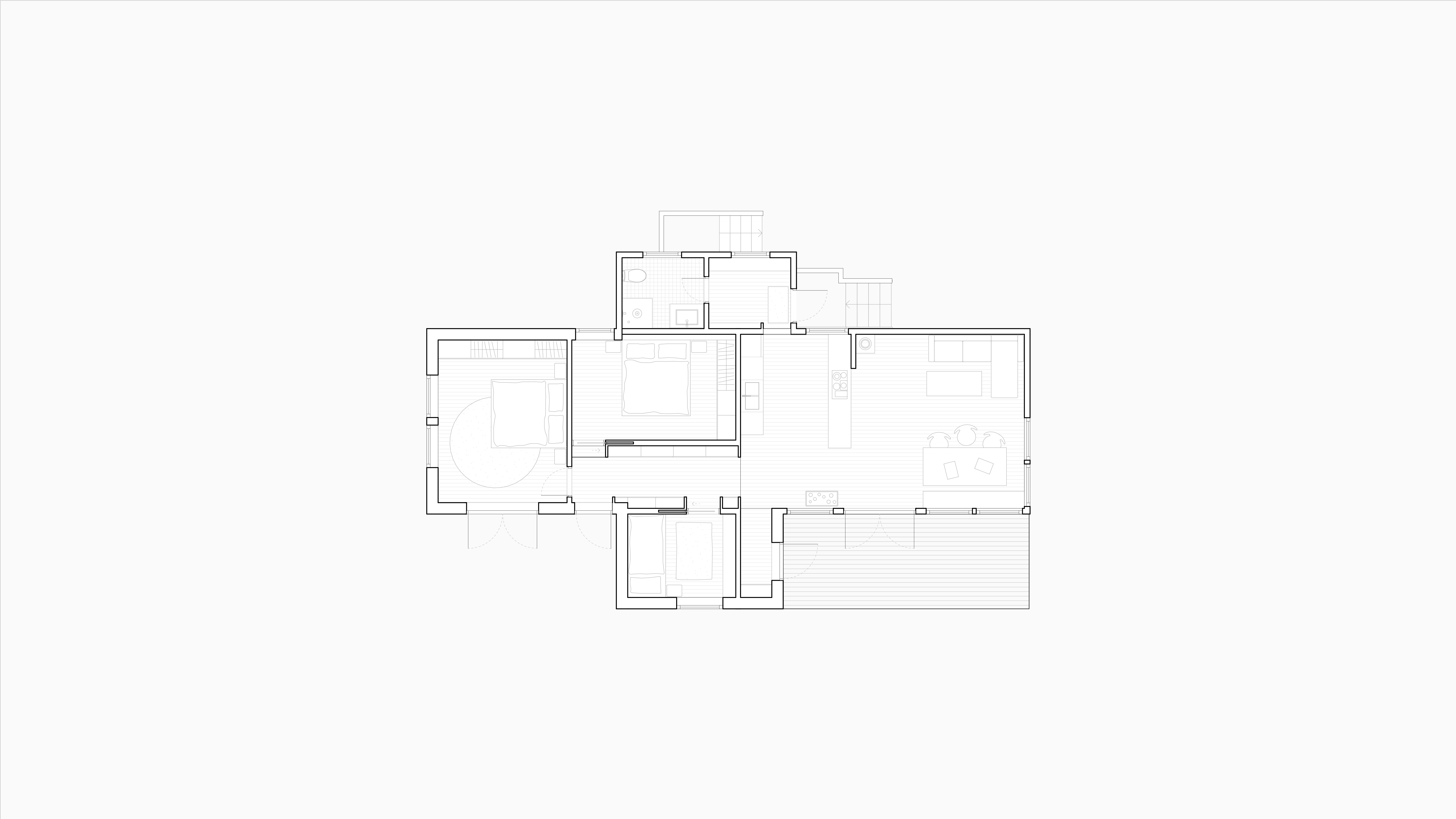 Utvidelse av enebolig fra 60-tallet. Kunde ønsket å beholde husets karakter og uttrykk, men hadde behov for mer plass. Den foreslåtte utvidelsen gir et ekstra soverom, med soveplass til to, forbedret sirkulasjon og masse ekstra oppbevaringsplass. Tilbygget ble utført av kunden selv.